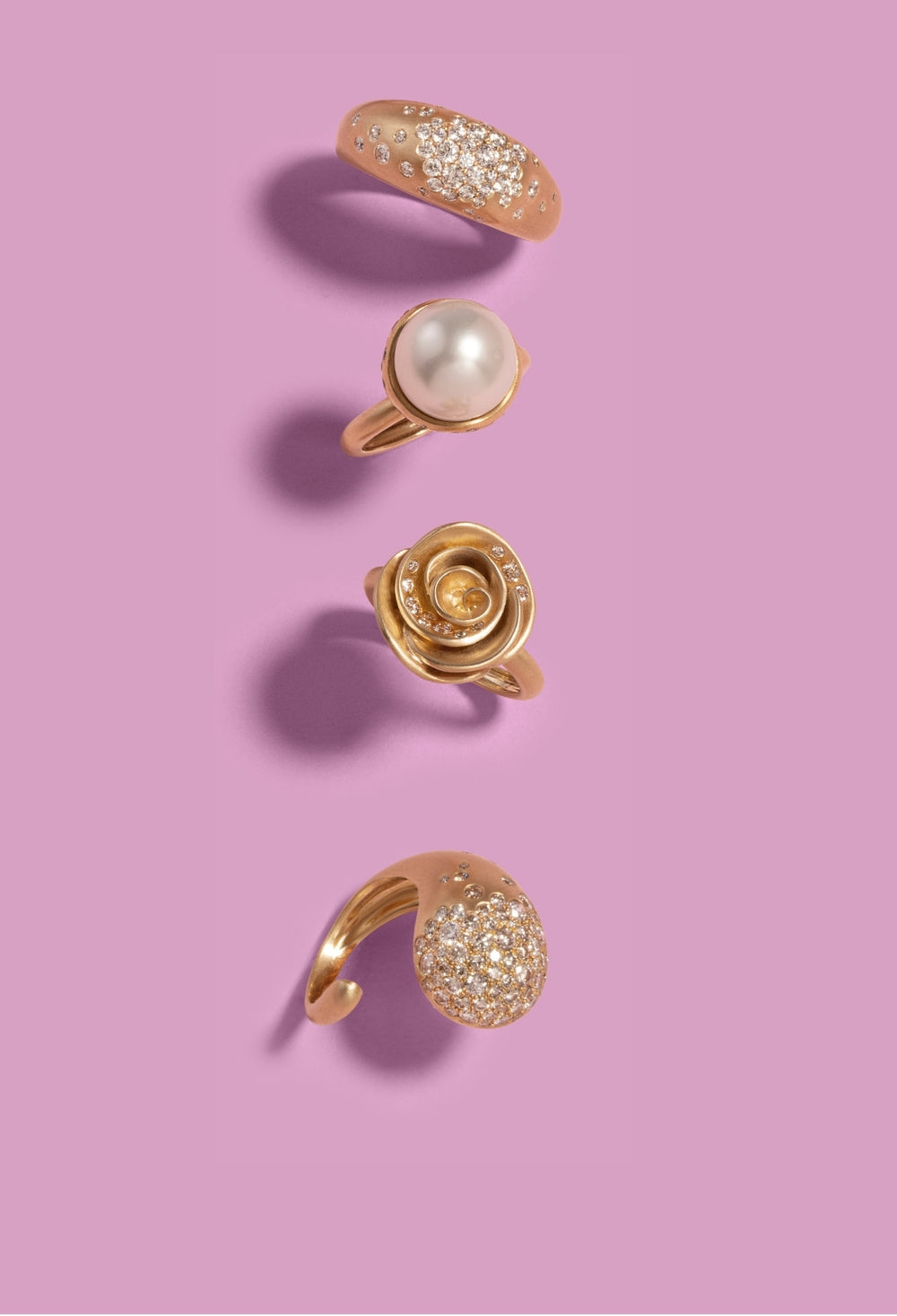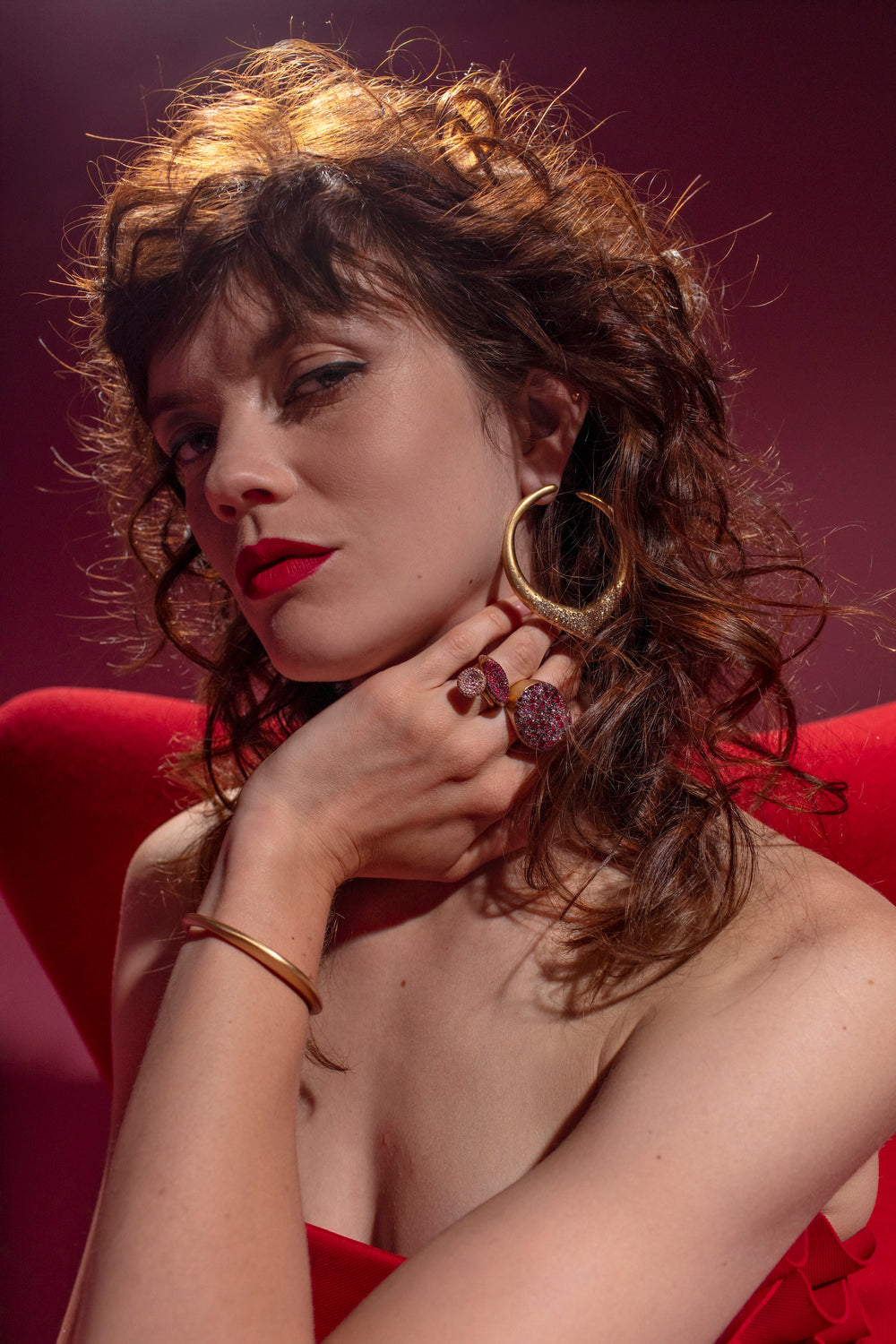 Nada Ghazal’s creations transcend traditional fine jewelry, merging art and emotion into sculptural masterpieces. Each piece is a jewel with soul, a labor of love handcrafted in brushed 18K gold and adorned with scattered diamonds and precious stones. These pieces capture feelings, memories, and experiences in every curve, inviting the wearer to weave their own story.