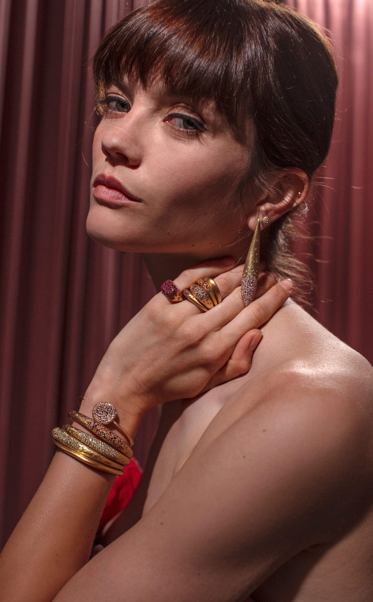 Designed for women who embrace individuality, Nada Ghazal’s jewelry is a bold yet sensual expression, sculptural yet fluid, contemporary yet timeless. Collectors curate, layer, and stack their pieces, allowing their collections to evolve with them over time, creating a deeply personal narrative that is uniquely their own.