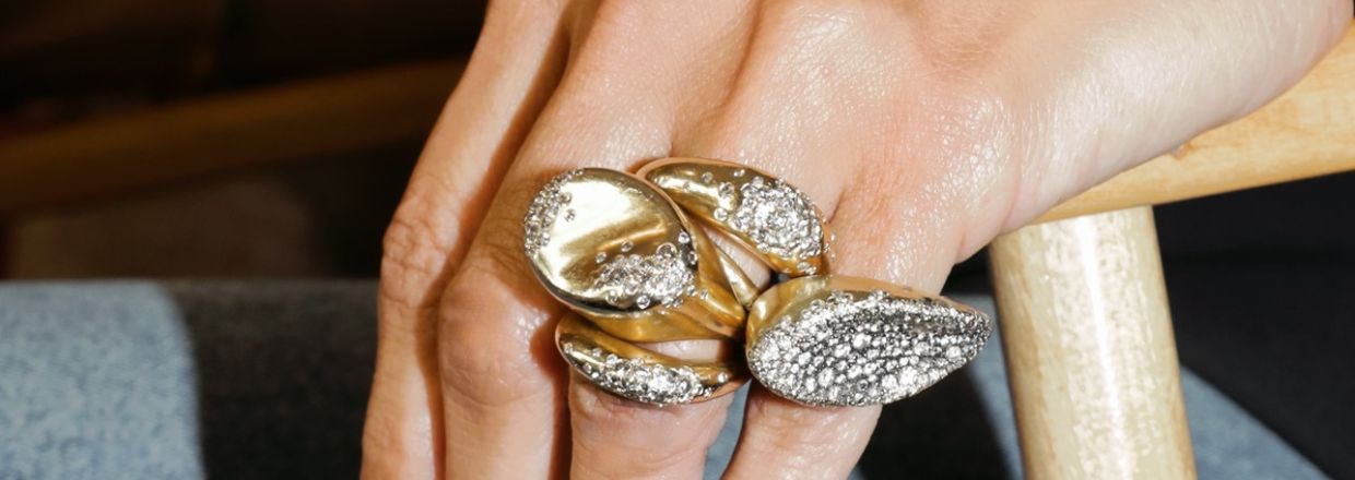 Styled and photographed by the talented Brandonn St. Regis, Racquel also adorned herself with other exquisite pieces from Nada Ghazal's collections. She wore the Lotus Petal Power Earrings from the Doors of Opportunity collection, the Urban Winter Cuff from the My Muse collection, and an entire engagement ring stack comprising the My Muse Storm Ring, the My Muse Urban Thick and Thin Ring, and the Baby Malak Flourish Marquise Champagne Diamond Ring.