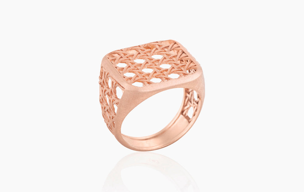 18K Rose Gold Ring With Cane Patterned Square Crown And Sides